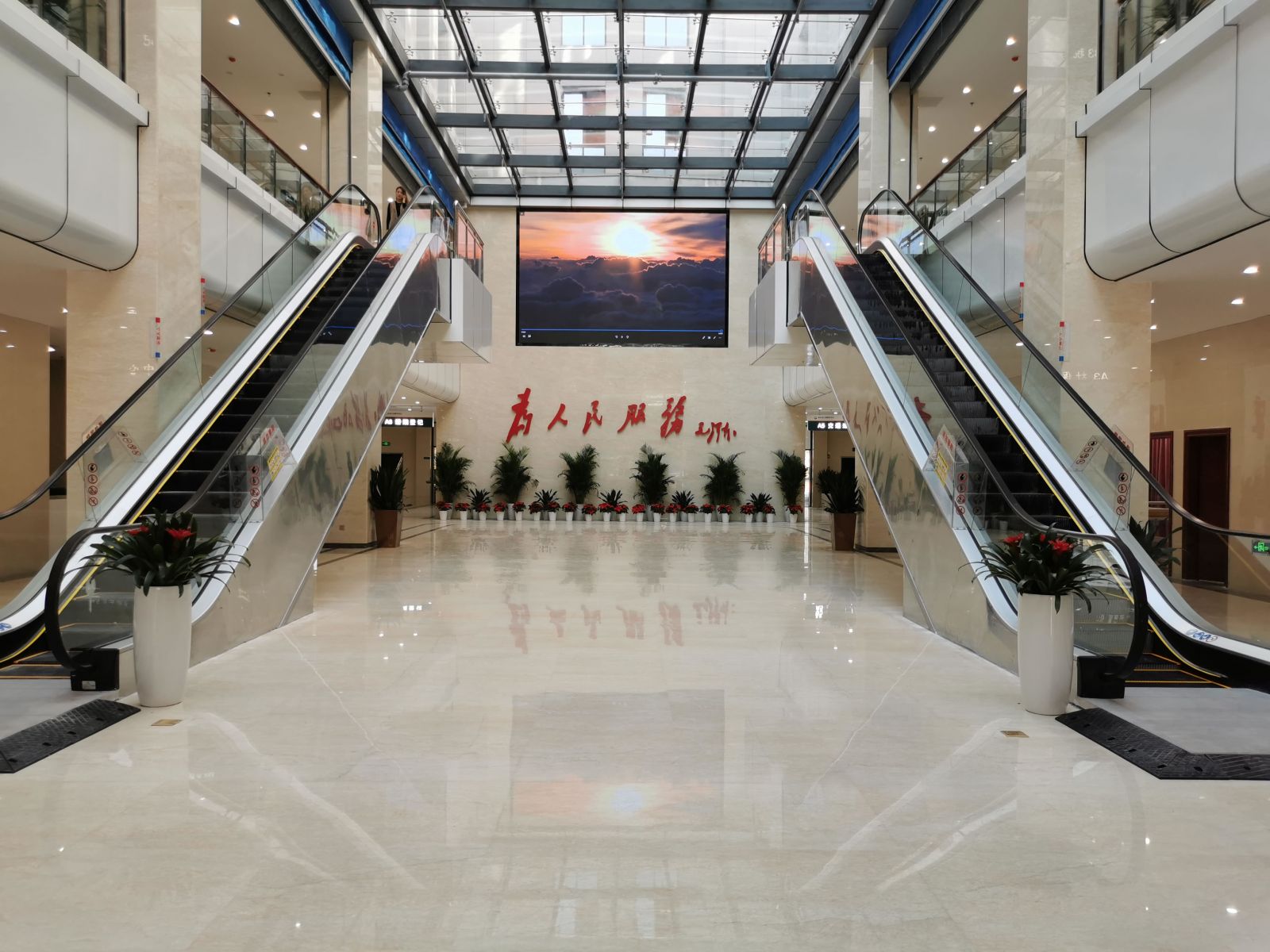 新中心大樓體形呈動感對稱的方正建筑形體,立面采用橫豎線條構圖;外墻采用豎向石材及落地窗裝飾。新中心按綠色建筑“二星級”標準建設,分中心區和配套服務區,中心區主要為政務服務中心大樓;配套服務區建設入口廣場、停車場、綠化景觀等配套設施?!?nbsp; 新中心大樓入口處將設兩層挑高10米的高門廳,布置3層高的中庭空間,擁有良好的采光通風及開闊舒適的互動空間。大樓除了設5部電梯外,中庭大廳還設2部自動扶梯。1-5層分別布置為民生保障服務區和便民自助服務區、企業注冊服務區和投資建設服務區、公共資源交易服務區、辦公區、綜合配套區。