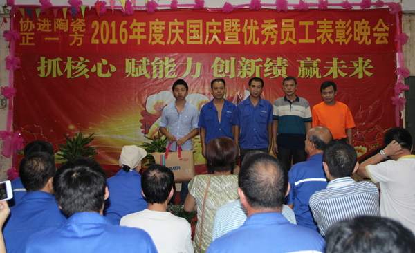 10月4日晚,金秋送爽,星空璀璨,協進廠區,華燈輝映,彩旗飄揚。為了表彰先進、樹立典型,鼓勵“人人爭當模范”的工作激情,弘揚“正品、精工、盡美、至善”的企業理念,倡導“攜手創輝煌,創新求卓越”的協進精神,南安協進(泉州正一方)2016年度優秀員工暨抗擊臺風先進個人表彰會在公司禮堂隆重舉行。公司領導王家助、楊寶貴、王少華、楊寶景、吳遠欣、馮先祿,以及各部門經理、主管、優秀員工、抗擊臺風先進個人等100余人出席表彰會。