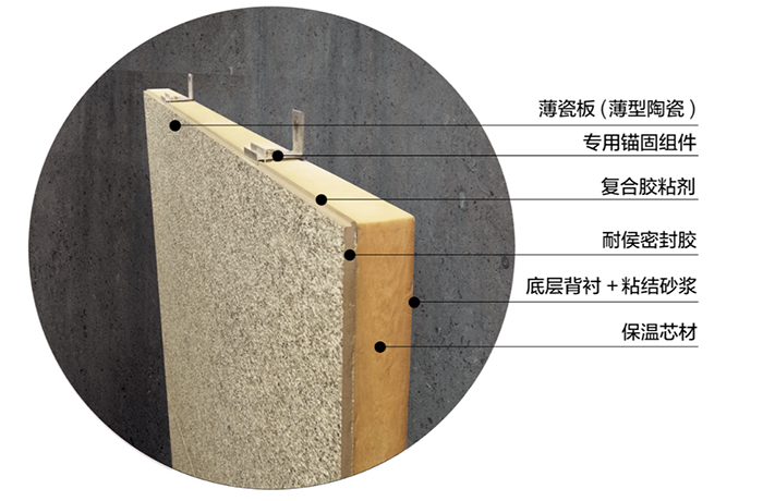 薄瓷板系列產品還可以與保溫材料復合成為陶瓷保溫復合一體板,既能夠達到仿石瓷磚的外觀裝飾效果,又可以起到建筑物的節能保溫作用,而且施工更便捷高效,可以得到廣泛的運用與推廣。